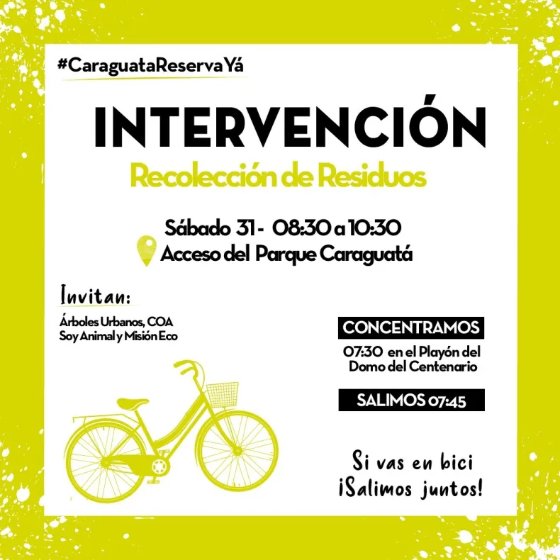 "Realizaremos el recorrido y limpieza en nuestro querido Parque Caraguatá", señalaron y agregaron: "¡Te invitamos a participar de esta actividad!".