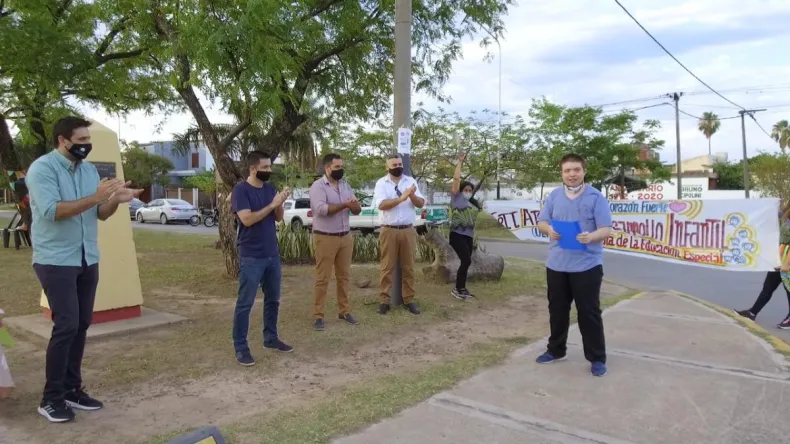 Organizada por el CETT-U.E.P Nº 100, en la tarde del viernes se realizó una emotiva caravana como cierre del mes de la Educación especial. La misma contó con la presencia del intendente Bruno Cipolini; el secretario de Desarrollo Humano y Deportes, German Rearte; el subsecretario de Acción Social, German Arriola y el director de Discapacidad, Marcelo García.