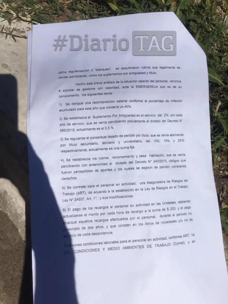 Se manifestaron en sintonía con lo que sucede en distintas unidades federales de todo el país, en los cuales también exigen mejoras salariales. Según expresaron, piden un aumento "acorde a la inflación aproximada para el año 2020, que rondaría el 40%".