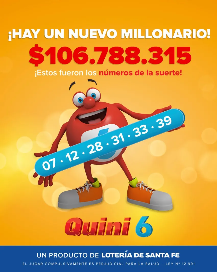 Anoche un correntino se convirtió en millonario tras ganar el pozo de $106.788.315 en el sorteo de Quini 6, según informaron desde la Lotería de Santa Fe. El apostador acertó los seis números en "El Tradicional" del Quini 6 que jugó en la Agencia Oficial 377 ubicada en la esquina de La Rioja y 9 de Julio.