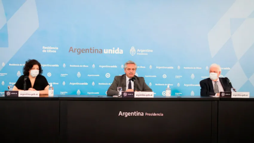 Acompañado por el ministro de Salud de la Nación, Ginés González García, y la secretaria de Acceso a la Salud de la Nación, Carla Vizzotti, expresó: "Hace 14 días, después de hablar con distintos gobernadores del país, tomamos una serie de medidas. Empezamos a lograr amesetar la curva de contagios y que empiece a ceder, paulatinamente, en muchos lugares. Nos da una relativa tranquilidad, porque pareciera ser que la situación de seguir cumpliendo las pautas sanitarias, seguramente pueda ayudarnos a conseguir los objetivos que estamos buscando".