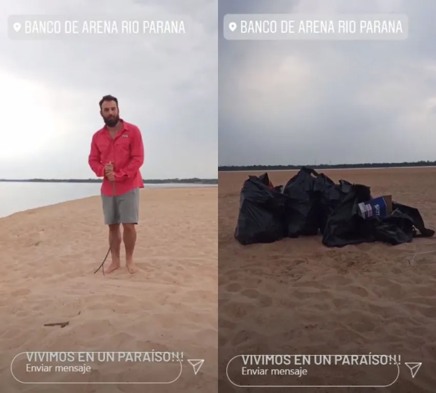 Un usuario de Instagram compartió en sus historias varios videos en el banco de arena del río Paraná en los que pide "no ensuciemos este paraíso, llevemos nuestra basura a nuestra casa", luego de haber limpiado el lugar y juntado en bolsas los residuos que había.