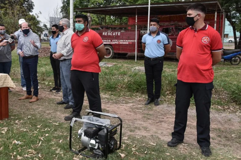 En cuanto al cuartel de Bomberos Voluntarios, el Ministerio hizo entrega de una camioneta y una motobomba a través de la Dirección de Defensa Civil. "Somos conscientes de la difícil situación que pasa nuestra provincia en cuanto a los incendios. Por eso hoy estamos aquí para entregar esta motobomba que será de gran utilidad para combatirlos y una camioneta que conseguimos gracias al gran accionar de la Justicia Federal", expresó Chapo.