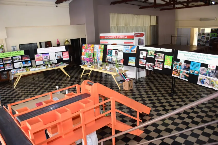 En la muestra instalada en Casa de Cultura, calle 12 esquina 9 del centro, se pueden observar una réplica a escala de la Planta de Reciclado Municipal, plantines con botellas plásticas; telas plásticas, anotadores y cuadernos hechos con papel reciclado, cestos hechos con tetra break, fotografías; artesanías.