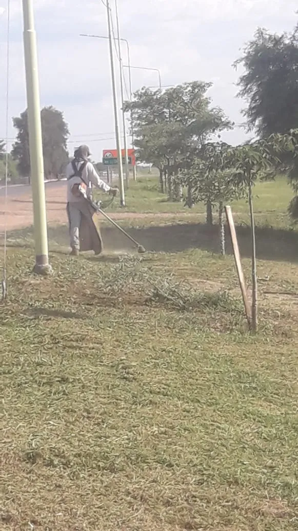 Personal municipal del área de la Secretaría de Servicios Públicos dependiente de Rubén Chavez, lleva adelante trabajos de limpieza y mantenimiento en rutas de circunvalación a la ciudad de Castelli.