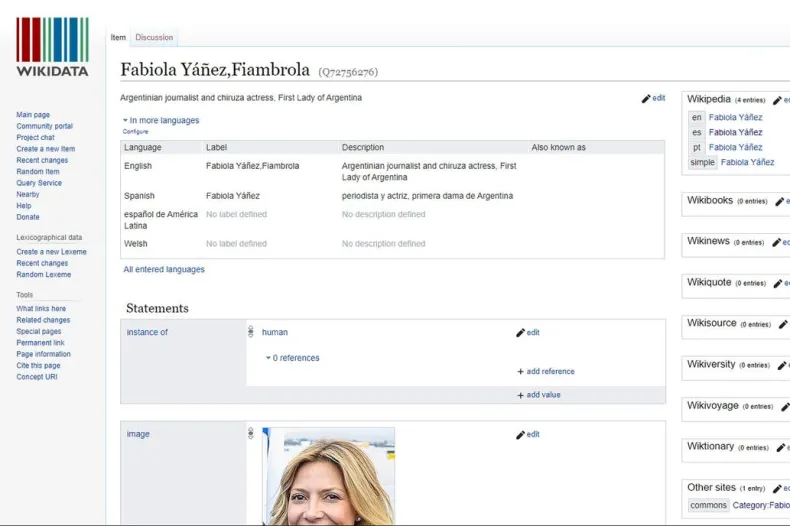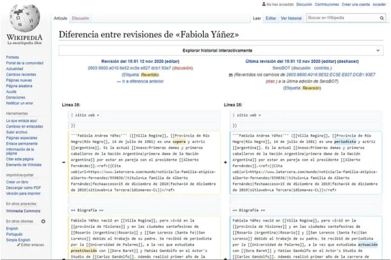 "Chiruza" y "florero": cambiaron la descripción de Fabiola Yáñez en Wikipedia y en Wikidata