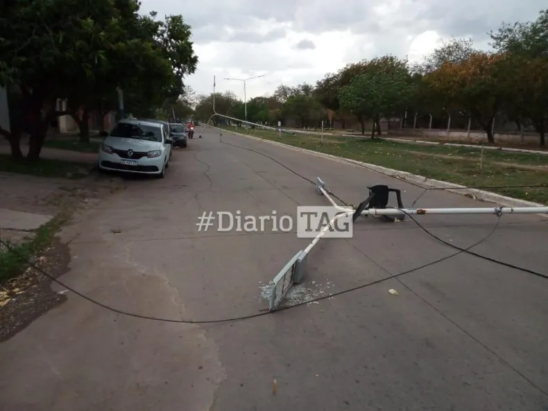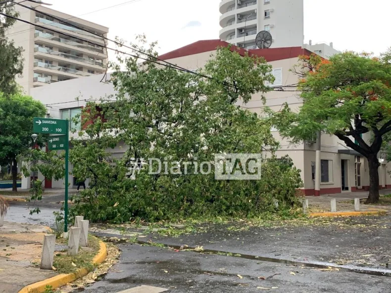 Las consecuencias del tiempo dejaron varios postes y árboles caídos, voladuras de chapas y hasta la inclinación de una garita ubicada en avenida Lavalle al 1300.