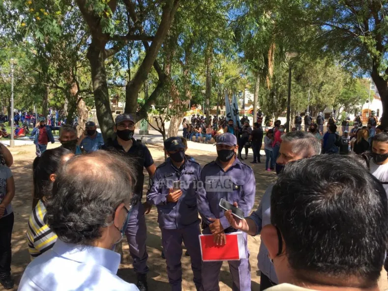 La cantidad de manifestantes era importante, pero también la presencia de agentes policiales encabezados por el actual subsecretario de Prevención y Seguridad en Abordaje Territorial, Gustavo Olivello, actual funcionario muy cuestionado por las organizaciones sociales, quien mantuvo una tensa discusión con Carlos Martínez, presidente de Libres del Sur.