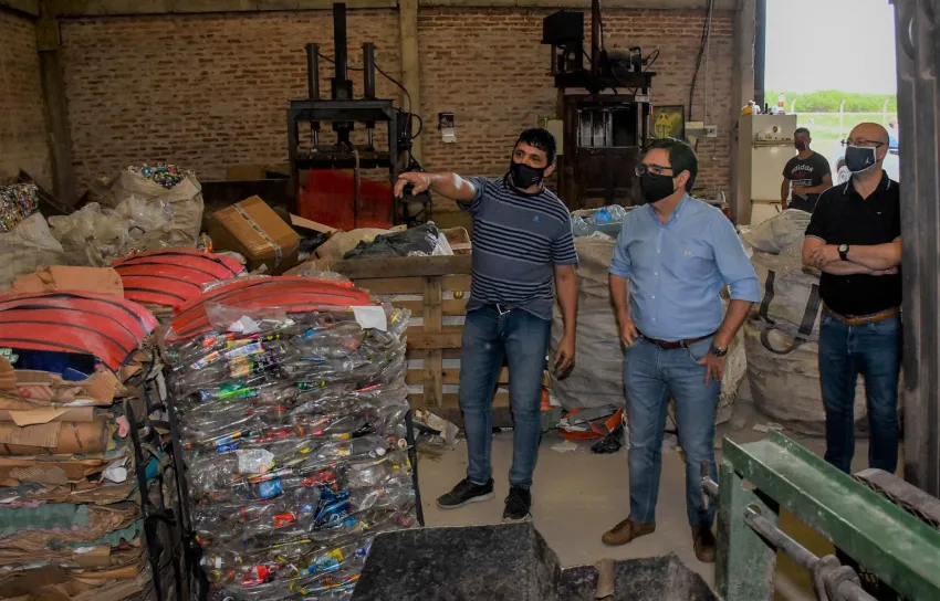 El intendente Gustavo Martínez recorrió el predio que forma parte del proyecto de Gestión de Residuos del Área Metropolitana (GRAM), donde fundamentalmente se lleva a cabo la separación de desechos sólidos secos para su posterior reciclado.