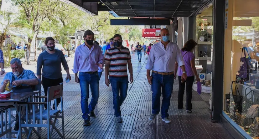 Autoridades de la Ciudad de Resistencia y representantes de la Cámara de Comercio recorrieron la Peatonal "Raúl Alfonsín" y tomaron contacto directo con los propietarios de negocios para dialogar acerca de la situación del sector y recepcionar las situaciones particulares agravadas por el contexto de pandemia. La actividad fue encabezada por el subsecretario de Industria y Comercio comunal, Sergio Vallejos y el presidente de la entidad mercantil Martín Giménez.