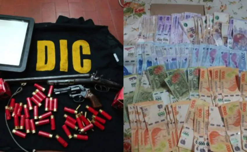 Además, secuestraron una camioneta marca Toyota –sindicado como el móvil que utilizaban para los robos-, la suma de $50.600, un bolso tipo morral con cierre, una escopeta doble caño calibre 16, un arma de fuego calibre 38 corto, 37 cartuchos calibre 16, tres vainas servida calibre 38 mm, un cartucho calibre 38 mm, un cartucho calibre 22 mm, un reflector.