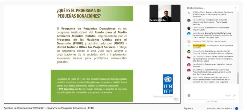 Durante el lanzamiento, realizado en vivo por la plataforma de YouTube del PPD Argentina, el representante del PNUD en Argentina, René Mauricio Valdés, recordó que este es "un programa que nos permite trabajar a nivel local en temas de gran relevancia a nivel mundial", destacando que, teniendo en cuenta el contexto de pandemia que atravesamos, nos brinda la posibilidad de que los proyectos apoyen a las comunidades a abordar proactivamente los efectos de la pandemia y a reconstruirse. "Son factores que van a estar siendo tenidos en cuenta en esta convocatoria", afirmó.
