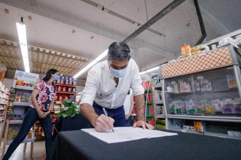 El acuerdo, firmado con representantes de la Cámara Argentina de Supermercados (CAS) prevé mantener una oferta mínima de diez marcas de alimentos locales durante al menos un año. Los productos se presentarán en una góndola exclusiva de productos fabricados, elaborados, envasados y fraccionados en la provincia. En una próxima etapa, se pretende agregar productos congelados. La CAS cuenta con 32 asociados en la provincia que llegan a nueve localidades en nuestro territorio.