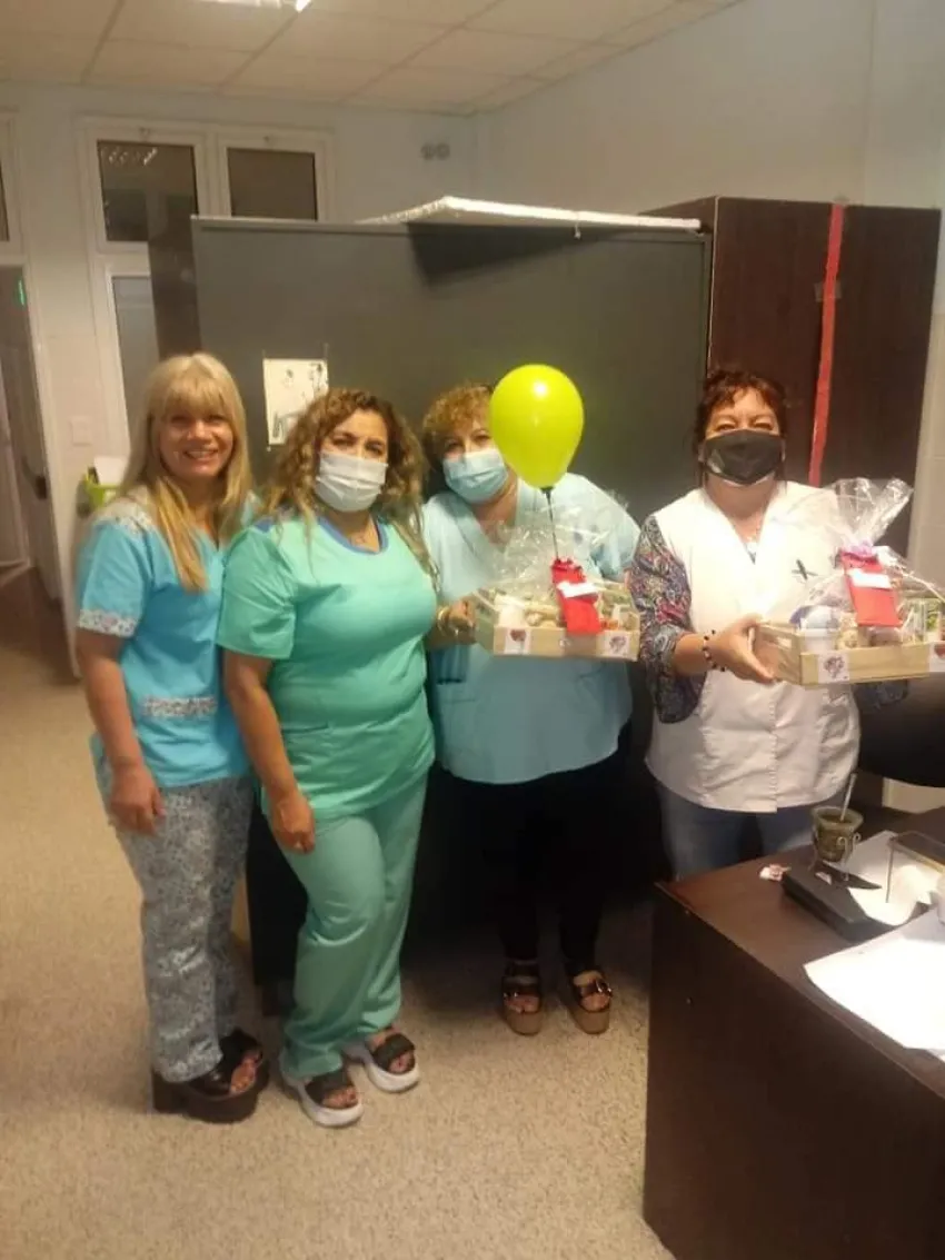 Como todos los años, el 21 de noviembre se recuerda el Día de los Enfermeros y en el Hospital 4 de Junio uno de ellos, Claudia Gorostiaga, que se desempeña en el Servicio de Cirugía Plástica Maxilofacial y Quemado, ofreció a sus colegas enfermeros un pequeño agasajo. Este año dada las circunstancias generada por la pandemia el festejo fue diferente.
