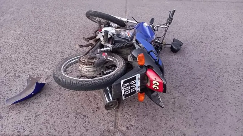 Creca de las 5.30 de este domingo, un automóvil y una motocicleta protagonizaron un impactante accidente en la esquina de la avenida San Martín y calle Carlos Boggio.