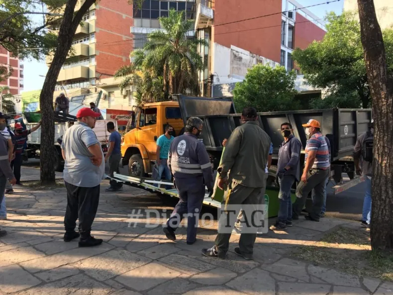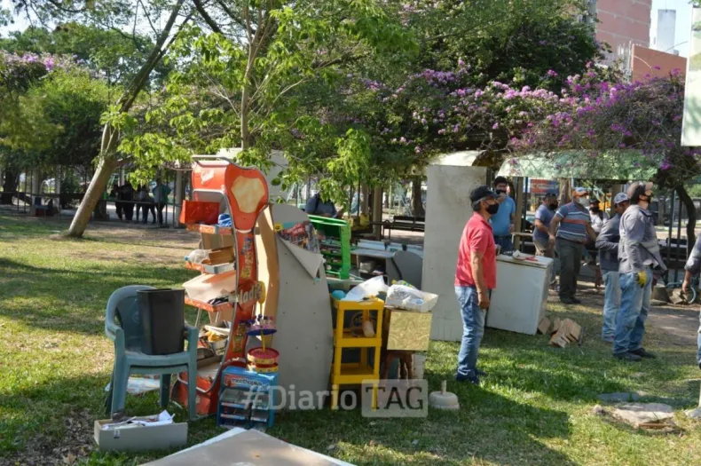 El segundo desalojo se produjo en el puesto ubicado en calle Juan B. Justo frente al Banco Hipotecario, allí desarmaron las estructuras y las trasladaron al corralón municipal. El tercero operativo se ejecutó en el local que está en el centro de la plaza, allí su propietario se resistió a que las estructuras sean desarmadas y solicitó que se lleve el puesto completo. Algo que finalmente sucedió.