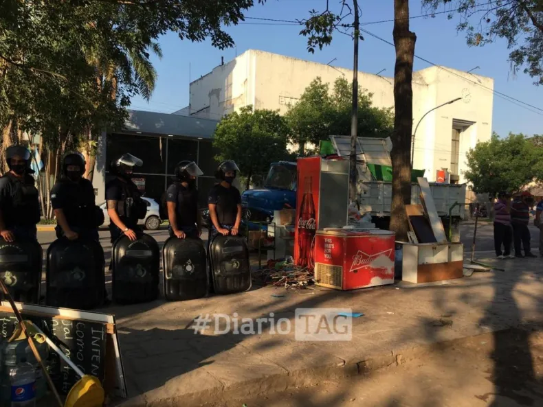 Los puestos de comida callejera se encuentran en la plaza 25 de Mayo hace 25 años y según indicaron las autoridades a Diario TAG no tienen aval normativo para funcionar. Durante el procedimiento que se llevó a cabo en las primeras horas de este miércoles detuvieron a la dueña del local ubicado frente al Banco Nación por resistirse a la remoción de su local.