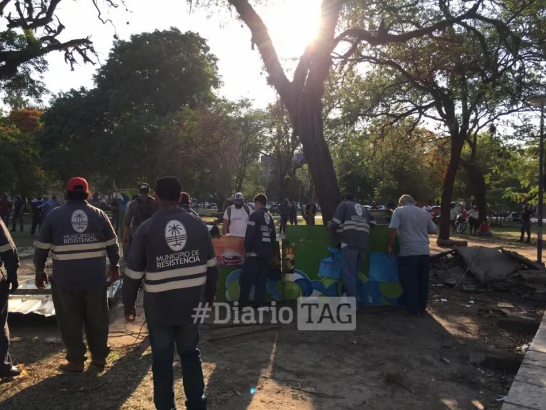 A las 7 de la mañana inició el operativo municipal para retirar los puestos de panchos y gaseosas ubicados en la Plaza 25 de Mayo, ordenado por la Jueza de Faltas, Zulema Gialdroni y solicitados por el Municipio de Resistencia. La intervención es una continuidad de lo que sucedió ayer cuando se procedió a clausurar los locales tras una notificación previa, que según los propietarios recibieron el día sábado a las 20 horas.