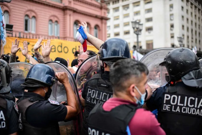 Una hora después de que se abrieran las puertas de Casa Rosada para la despedida a Diego Maradona volvieron a vivirse momentos de tensión a metros de la sede del Ejecutivo, luego de los incidentes que se produjeron poco después de las 6. Los fanáticos corrieron los vallados en Plaza de Mayo, empujaron para entrar y se enfrentaron con la Policía. Una persona resultó herida.