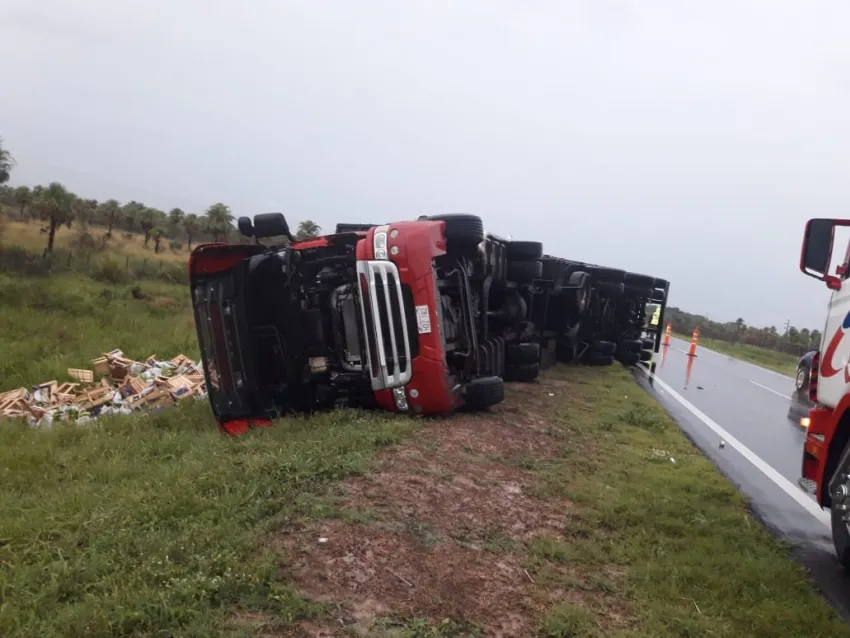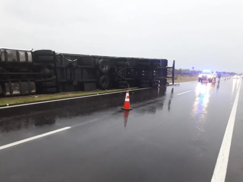 Lluvia y peligro en Ruta 11: volcó un camión con acoplado en el kilómetro 1043