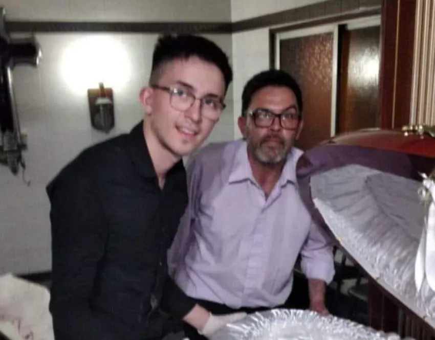 El empleado de la funeraria argumentó que la foto no fue sacada de su teléfono y que, pese a lo que se aprecia en la imagen, ni él ni su hijo posaron de manera intencional.