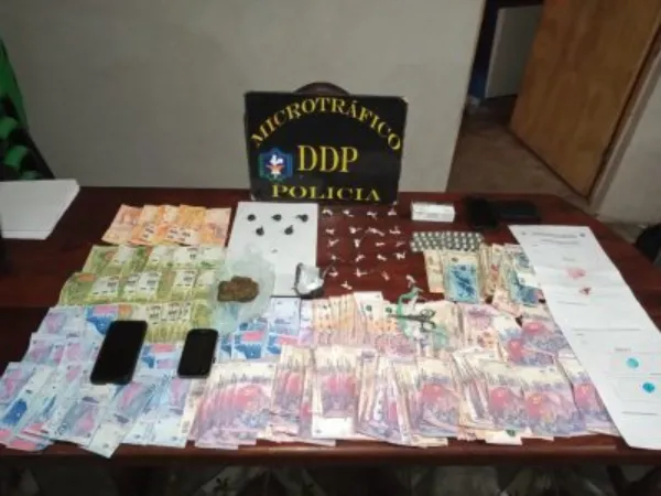 En el dormitorio hallaron 22 envoltorios de polietileno conteniendo cocaína con un peso de 13 gramos aproximadamente, también 6 envoltorios similares con marihuana pesando 66 gramos. Seguidamente, en otra habitación encontraron 46 comprimidos de pastillas de Clonazepan, unos 59.000 mil pesos en efectivo, un teléfono celular y varios envoltorios de polietileno. En tanto en el patio secuestraron don motocicletas de 110 cc.