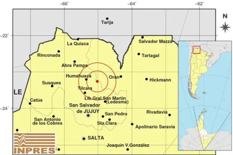 Según Infobae, un fuerte sismo de magnitud 5.9 en la escala sismológica de Richter se sintió esta tarde en las provincias de Salta y Jujuy. De acuerdo a lo informado por el Instituto Nacional de Prevención Sísmica (INPRES), el evento se produjo a las 13:40 horas y el epicentro se localizó 106 km al norte de San Salvador de Jujuy y 177 km al norte de la ciudad de Salta, 34 km al este de Humahuaca, donde los pobladores locales se volcaron a las redes sociales para compartir imágenes y videos de desmoronamientos en zonas de montañas y cerros. El temblor habría durado varios segundos.