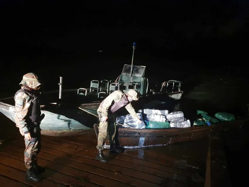 Ante esta situación, una patrulla fluvial se dirigió hasta el lugar y logró interceptar el bote, deteniendo así a sus ocupantes, quienes transportaban 21 bolsas de nylon que en su interior contenían 232 paquetes de flores de marihuana y 372 ladrillos prensados, con un valor estimado en más de 31.200.000 pesos.