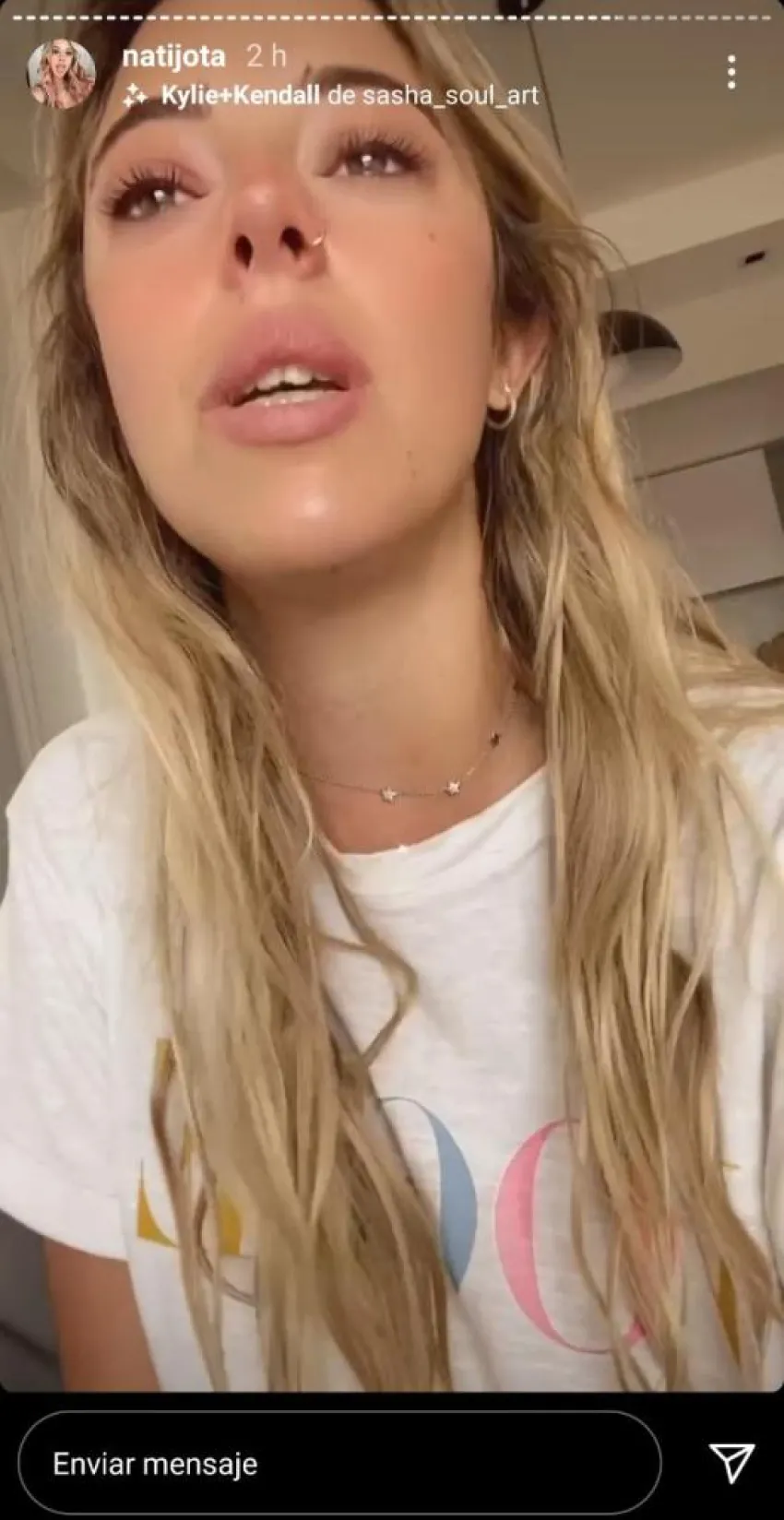 "Pido disculpas. Hagan lo que quieran, odienme. Tal vez me convenía no decir nada y dejarlo pasar. Me están pesando los minutos. Estoy del orto, me duele la espalda, la estoy pasando mal. Necesitaba decir algo. Quizás no sea inteligente, quizás borre estas Historias en un rato. Un beso a todos y disculpas otra vez", concluyó Nati Jota en su descargo.