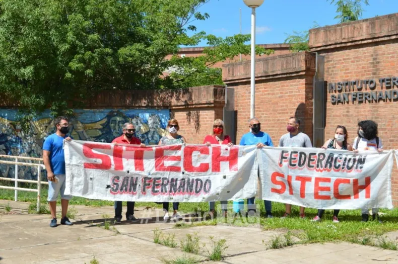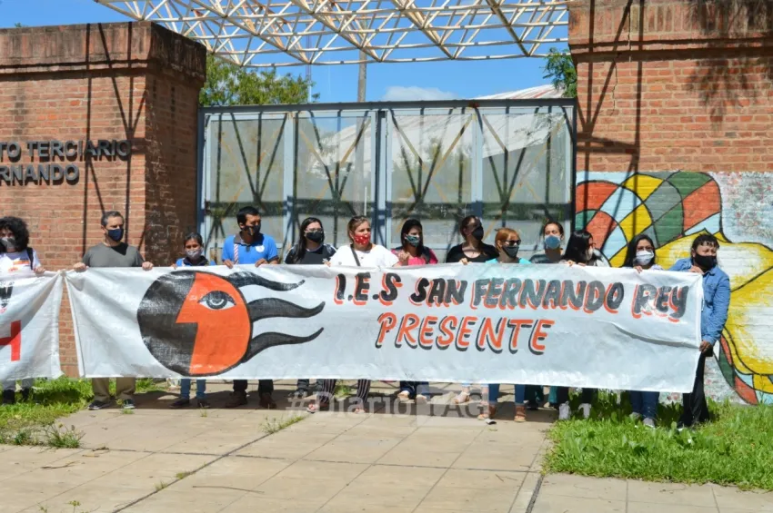 Desde el Instituto San Fernando Rey un grupo de docentes, alumnos y representantes de Federación SITECH reclamaron por la situación de los Institutos de Educación Superior de la provincia.