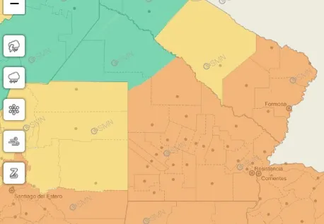 El SMN estrena su nuevo sistema de alerta temprana indicando que gran parte de la provincia, por lo anterior mencionado, está bajo alerta naranja.