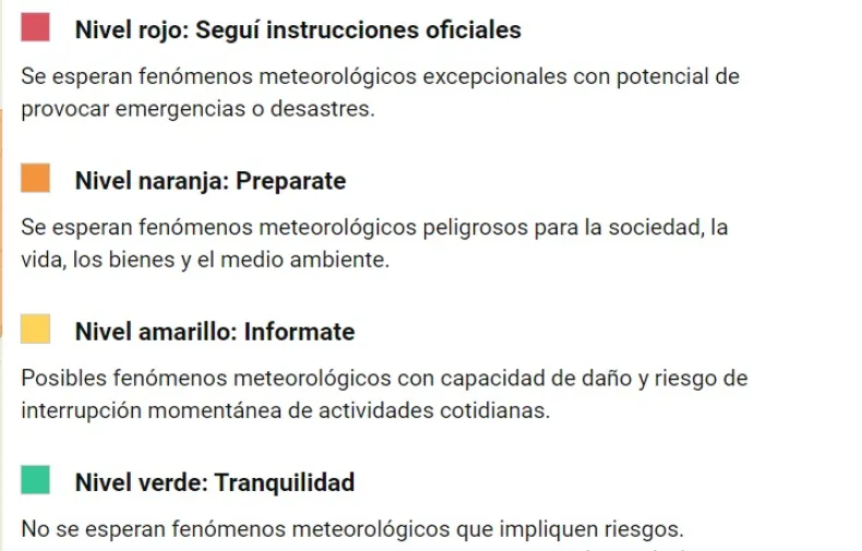 ¿Qué significa? El alerta naranja se resume bajo el concepto "preparate". Esto significa tener en cuenta las recomendaciones puesto que "se esperan fenómenos meteorológicos peligrosos para la sociedad, la vida, los bienes y el medio ambiente".