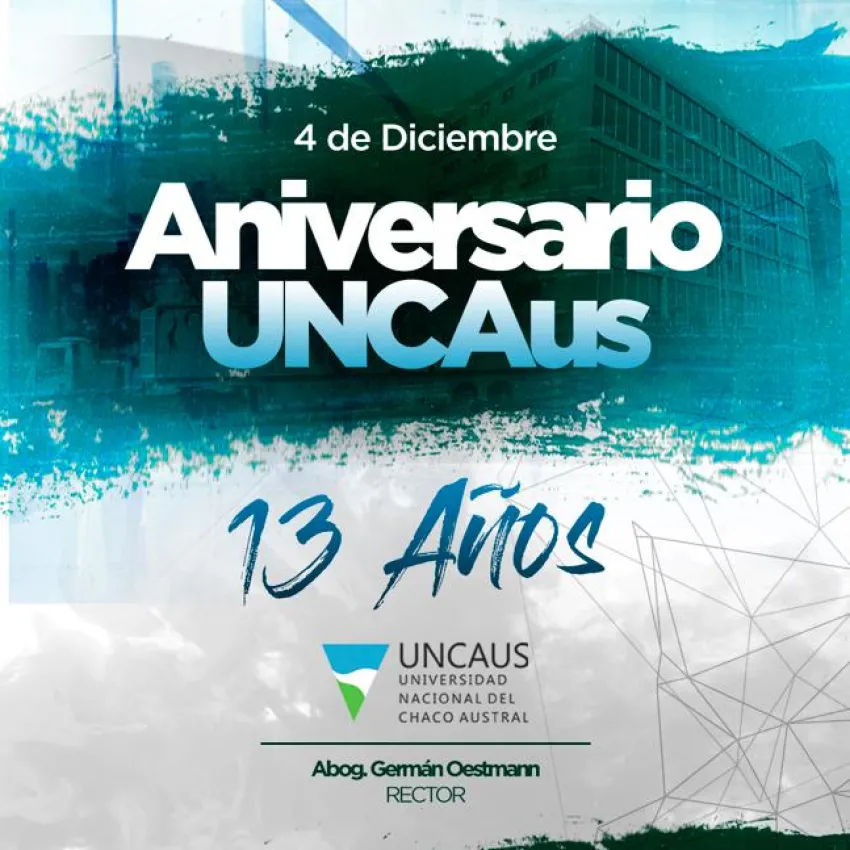 La Universidad Nacional del Chaco Austral (UNCAus) fue creada el 4 de diciembre de 2007 por medio de la Ley N°26.335, aprobada por el Congreso de la Nación Argentina. "Esta institución universitaria, ubicada en el centro de la provincia de Chaco, busca cada día llegar a más jóvenes y adultos con educación académica de excelencia. Este año la UNCAus celebra 13 años de intensa labor con diversos objetivos cumplidos y muchos otros por alcanzar", afirmaron desde la entidad.