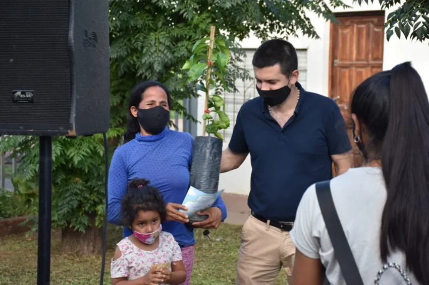 En la tarde del jueves se llevó a cabo jornada de concientización sobre el cuidado del medio ambiente y la importancia de los árboles en la Capilla Guadalupe del barrio Matadero. La misma contó con la presencia del intendente Bruno Cipolini, quien estuvo acompañado de Crucita Pereyra quien está a cargo del programa de acompañamiento a las familias del barrio y la subsecretaria de Medio Ambiente Laura Morales.