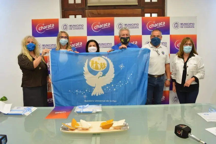 Esta mañana el Movimiento Mensajeros de Paz "Pacis Nuntii" ha distinguido a distintas personalidades de la Ciudad de Charata con la entrega de la Bandera Universal de la Paz en el marco del día internacional de la no violencia, el 40° Aniversario del taller de Arte y Escritura Creativa "Guiñazu Álvarez" y los 106 años de la ciudad de Charata que se celebró tiempo atrás.