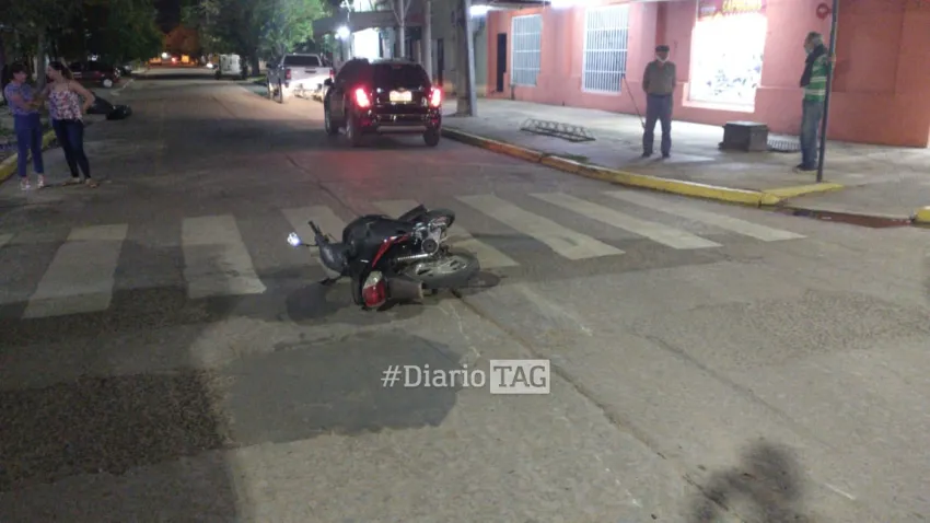 Anoche, en la esquina de calle 12 y 3 del centro de Sáenz Peña se produjo un accidente de tránsito entre una motocicleta, sin dominio, conducida por un niño de 13 años y un automóvil que era manejado por una mujer de 30.