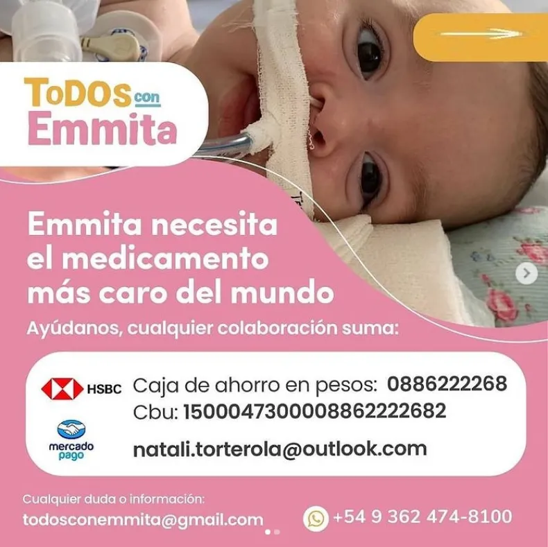 Su familia contó, y confirmó a este medio, que Emmita debe acceder al tratamiento antes de los dos años para que sea efectivo. Es por eso que la lucha contrarreloj de sus padres tomó una rápida visibilidad.