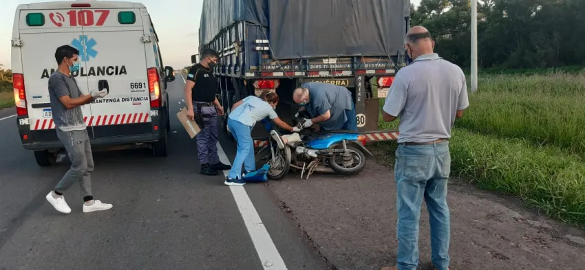 El camión -marca Scania, semiremolque- se encontraba estacionado sobre la banquina "cuando sentí impacto atrás del camión, me acerqué y vi que una motocicleta había colisionado", dijo su conductor.