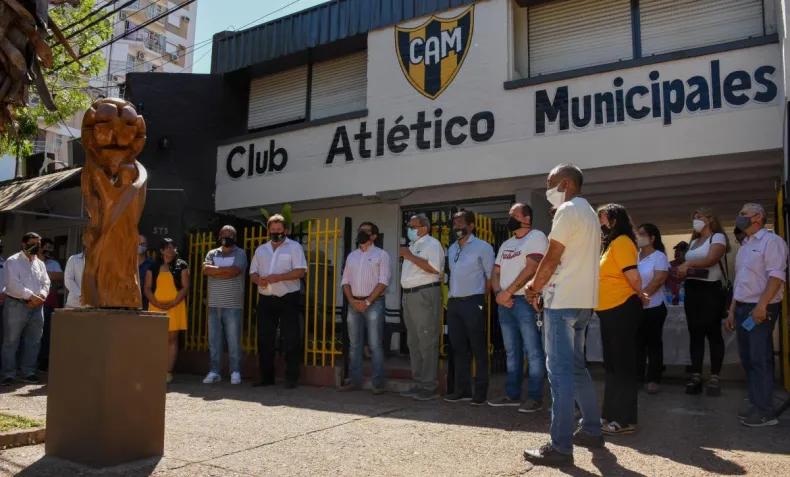 El intendente de la Ciudad de Resistencia, Gustavo Martínez, encabezó junto a autoridades e integrantes del Club Atlético Municipales el homenaje al trabajador municipal fallecido Eduardo Morinigo, colocando una placa en su nombre y entregando otra a sus familiares. En la misma ocasión, se inauguró en el frente de la entidad la escultura "Trabajadoras de hoy, madres de nuestro futuro", realizada por Adriana Pantanali y donada por la Fundación Urunday.