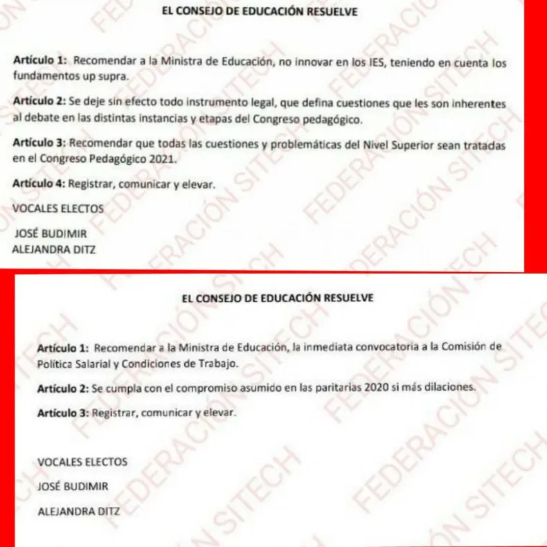 "Desde Federación Sitech apelamos a que el Consejo de Educación se expida de forma inmediata ya que tanto la cuestión salarial como el difícil momento que atraviesan los IES no ameritan dilaciones burocráticas y en este sentido los representantes que desde el sindicato tenemos en dicho órgano trabajaran, tal el compromiso asumido, en defensa de los derechos de los docentes y la escuela pública como es la línea de Federación Sitech", expresaron en un comunicado.
