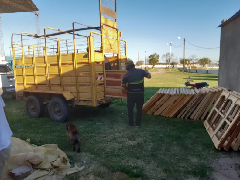 Personal de la Dirección de Bosques realizó la entrega de puertas y ventanas, a cinco instituciones de la localidad de General Pinedo.