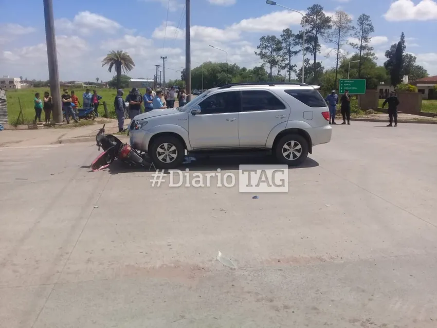Alrededor de las 10:30 horas de esta mañana, personal de la División Patrulla Vial de Sáenz Peña intervino en un accidente de tránsito en Colectora Norte y calle 28 -en inmediaciones a la Ruta Nacional Nº 16 km 183- entre una moto y una camioneta Toyota Hilux.