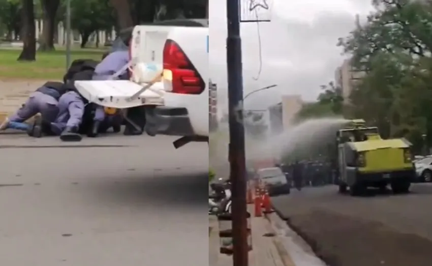 Desalojo de manifestantes con camión hidrante en la plaza: una mujer embarazada entre los detenidos
