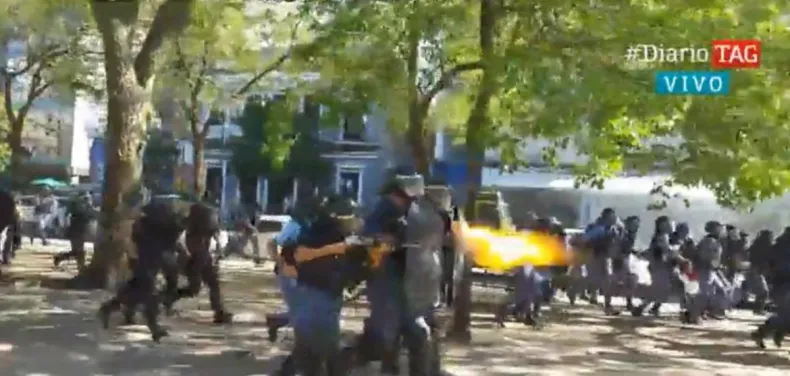 "Comenzaron a agredir de manera descontrolada y sorpredente, arrojando todo tipo de armas contundentes a la Policía, inclusive con rompeportones y caramelitos. Los efectivos fueron objeto de todo tipo de agresión, y en algún momento tiene que reaccionar para defenderse, la Policía no ofende, la Policía se defiende", manifestó.