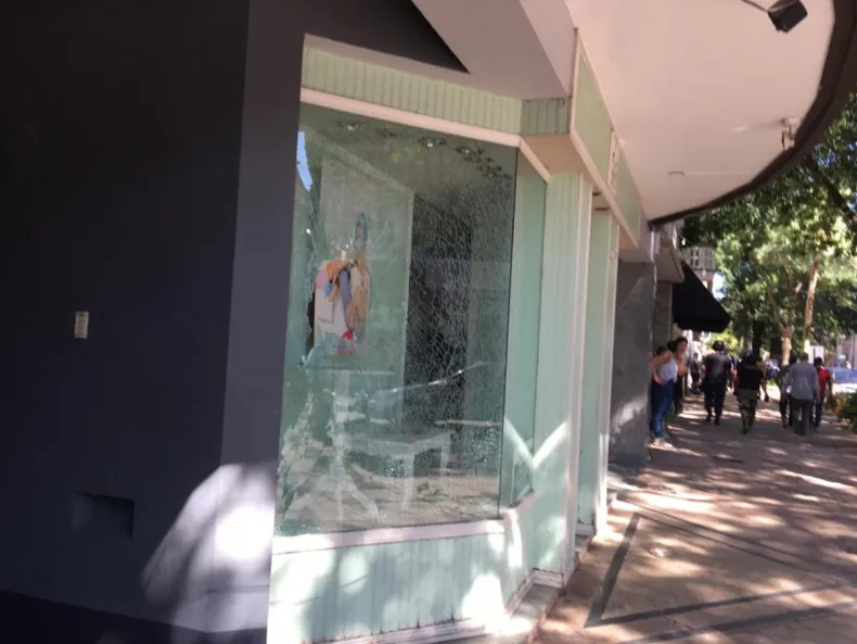 En su retirada por el microcentro de Resistencia, los manifestantes continuaron arrojando botellas y piedras hacia la Policía, y además vandalizaron vehículos y algunos locales comerciales, que sufrieron la rotura de sus vidrieras en la mayoría de los casos.