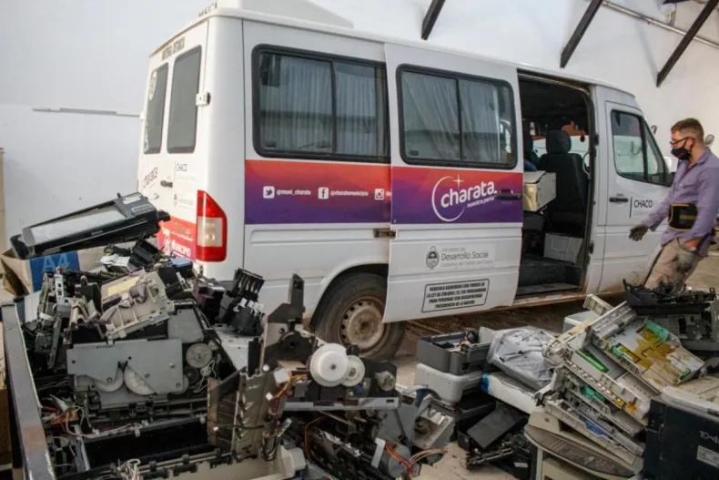 La gestión fue por el trabajo de la profesora Sabrina Antonoff, que se encargó de poner en marcha este proyecto que surgió desde el nivel primario de la UEGP 57 de Charata junto a jóvenes del nivel secundario del anexo de Las Breñas, para recolectar artefactos informáticos en desuso para trasladarlos hasta la planta recicladora que tiene la empresa Ecom en Resistencia. El Municipio de Charata colaboró con la movilidad para trasladarlos.