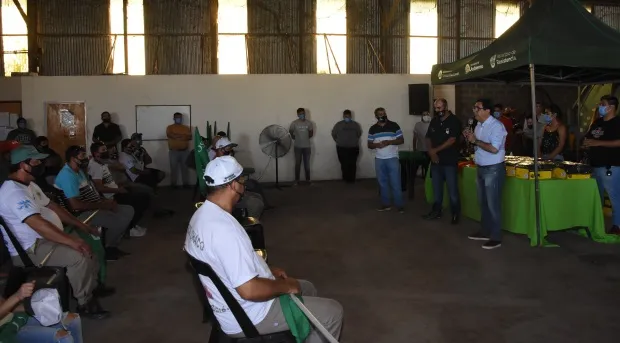 Unos 45 trabajadores recibieron camisas, remeras, pantalones y borceguíes durante la ceremonia que contó, además con la presencia de Juan Carlos Machado, secretario general del Sindicato de Camioneros y los delegados Raúl Elías y Matías Castillo.