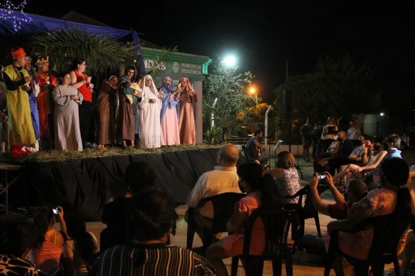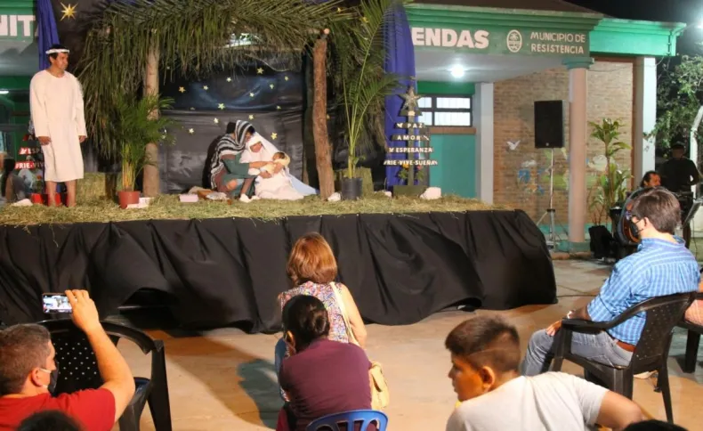 Una iniciativa conjunta del Centro Comunitario Municipal (CCM) del barrio 244 Viviendas de Resistencia y el Programa Integral para la Maternidad (PIM), junto a trabajadores municipales, permitió a los vecinos y vecinas disfrutar de un "Pesebre Viviente". El intendente Gustavo Martínez estuvo presente y compartió el emotivo momento con quienes se acercaron.