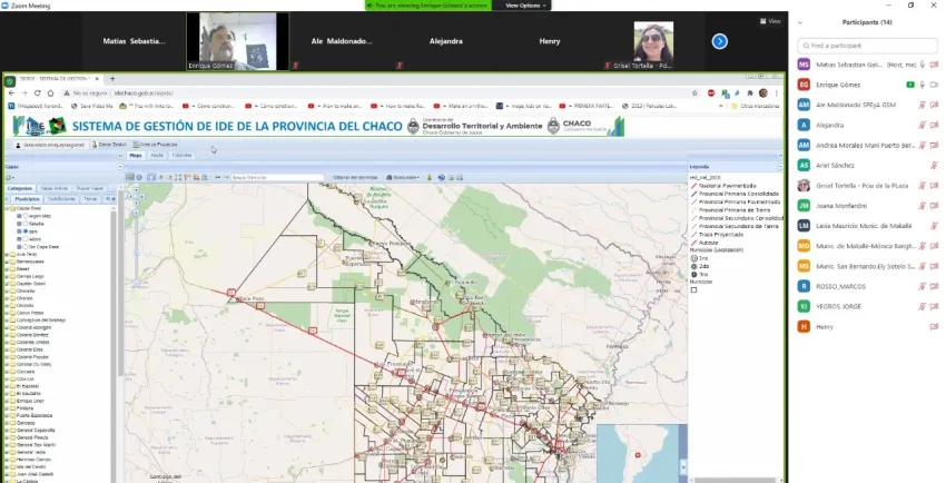 Brindado por la Secretaría de Desarrollo Territorial y Ambiente, en coordinación con la Dirección de Información Territorial del Chaco (IDE), del encuentro virtual participaron técnicos de los municipios de Miraflores, Presidencia de la Plaza, General San Martín, Quitilipi, Taco Pozo, Puerto Bermejo, San Bernardo y Makallé.
