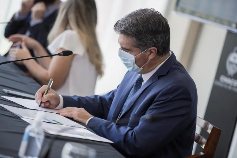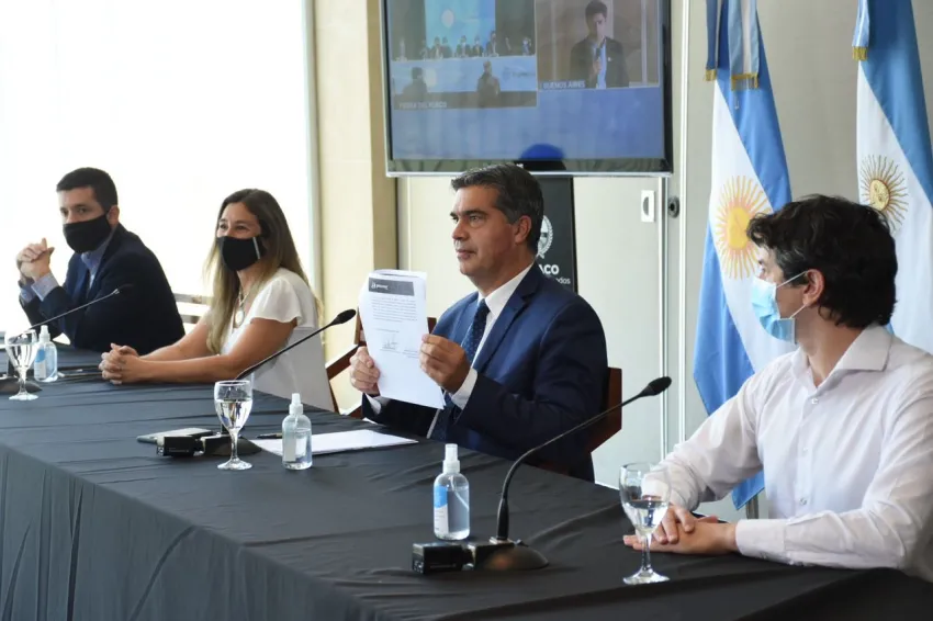 El gobernador Jorge Capitanich participó este lunes de la teleconferencia nacional en la que el presidente Alberto Fernández puso en marcha el Programa Capitales Alternas. En ese marco, firmó un acta de adjudicación de obra el desarrollo urbanístico de Procrear en Sáenz Peña con el ministro de Desarrollo Territorial y Hábitat, Jorge Ferraresi. El acuerdo forma parte del Plan nacional Casa Propia - Construir Futuro.